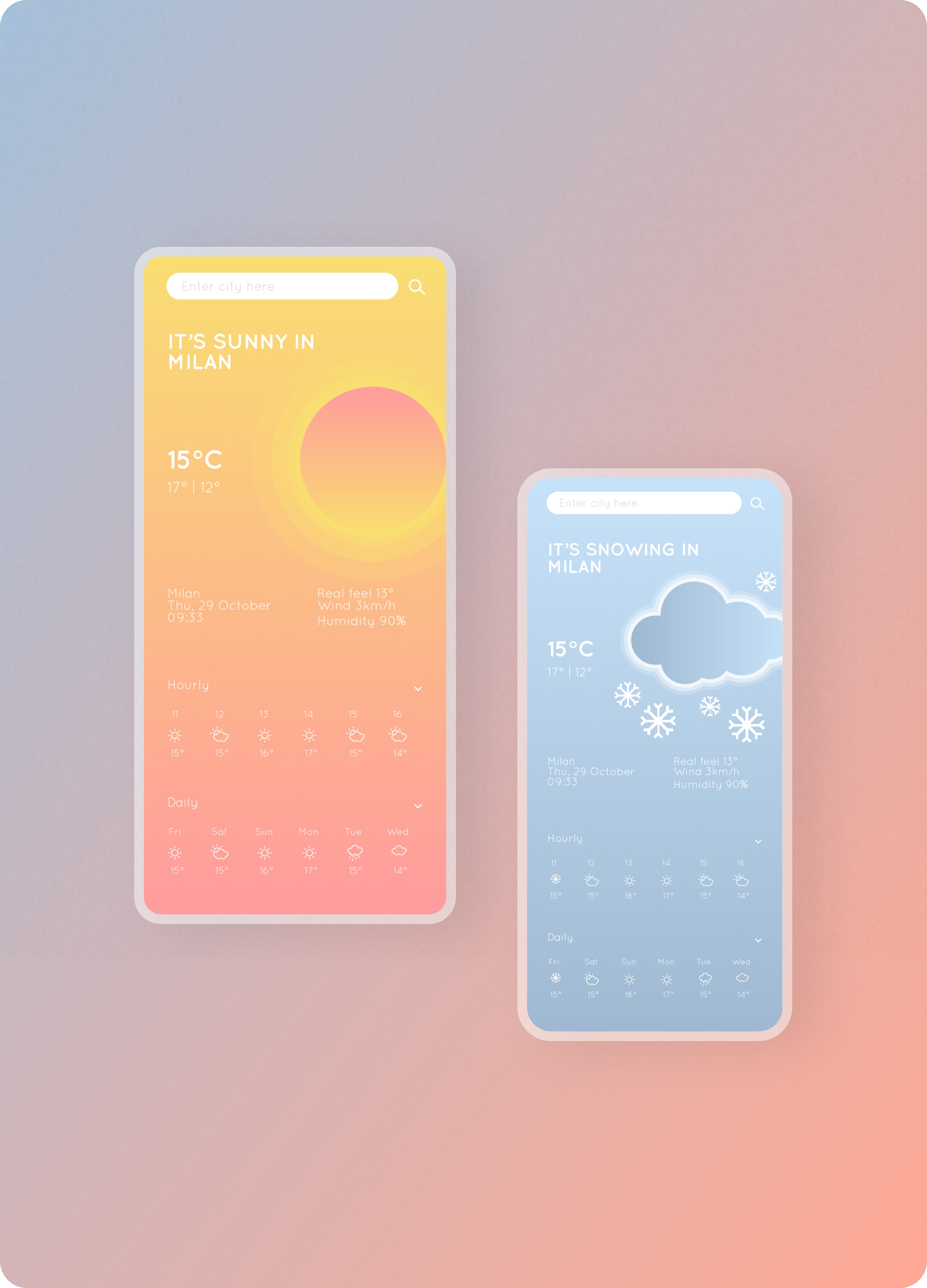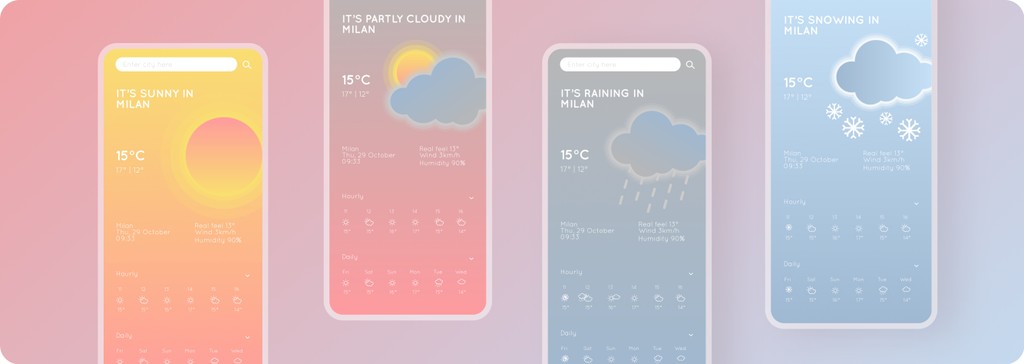 Delicate is a weather web application that delivers weather information in a vibrant and colorful way. The app design is characterized by its use of bright colors and playful graphics to create a lighthearted and cheerful user experience.