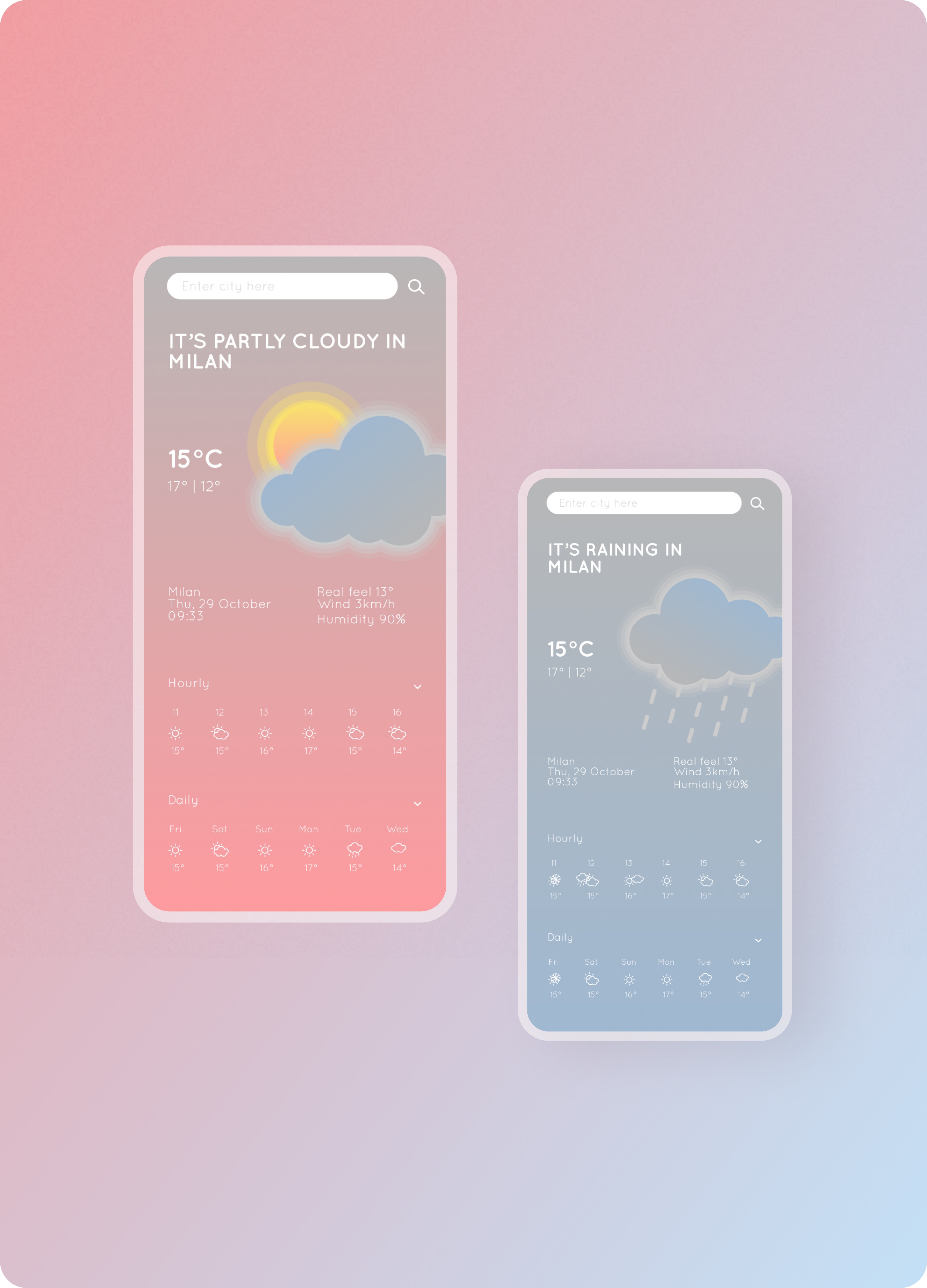 The interface changes depending on the weather condition.